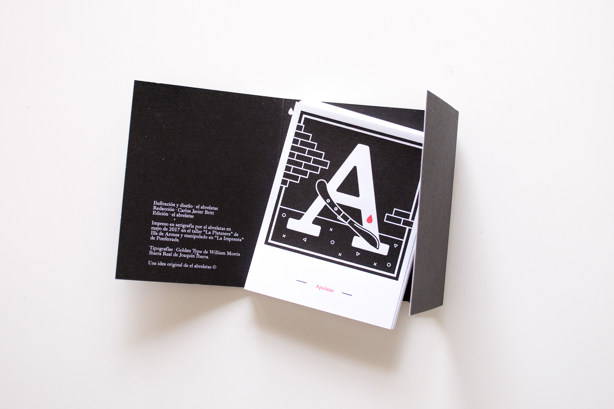 Each letter is a print who have their own story and illustration. An autoedition illustrated, designed and craft produced in screen-print by el abrelatas in 2017.