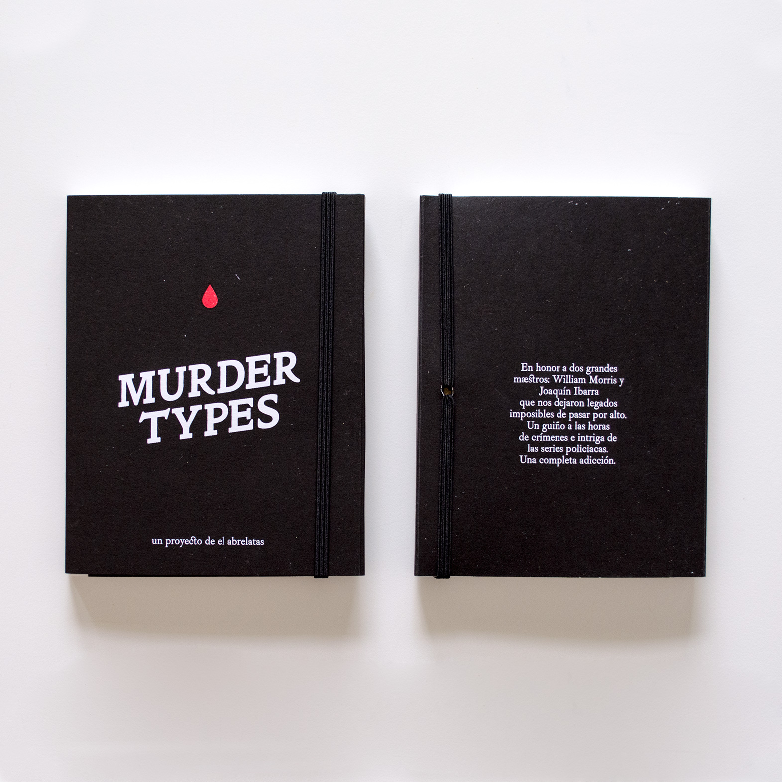 [vc_row][vc_column width=”1/2″][vc_column_text el_class=”idioma”]ES[/vc_column_text][vc_column_text]El Libro de Murder Types recopila, en un formato de 11x15cm, las 26 láminas que corresponden al abecedario del proyecto.Cada letra es una ficha que contiene su relato e ilustración. Una autoedición ilustrada, diseñada y producida de forma artesanal en serigrafía por el abrelatas durante abril-mayo de 2017 y presentada el 19 de mayo Madrid.